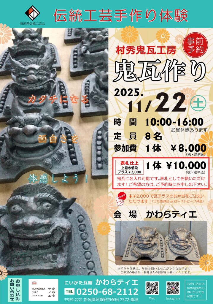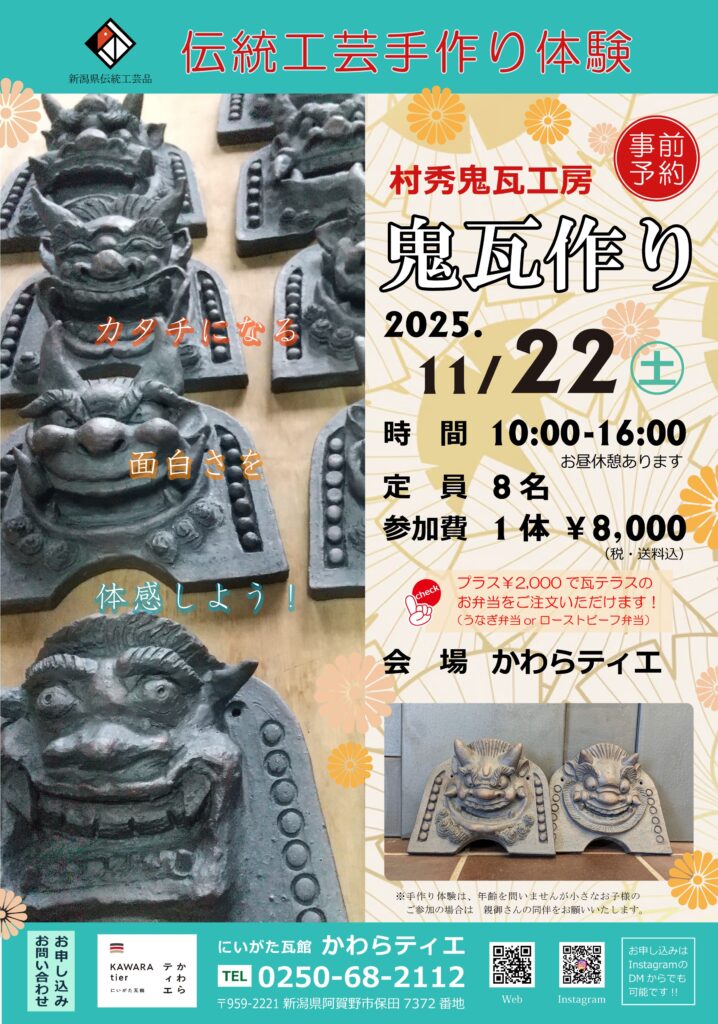 11/22(土) 鬼瓦作り体験開催! かわらティエ
